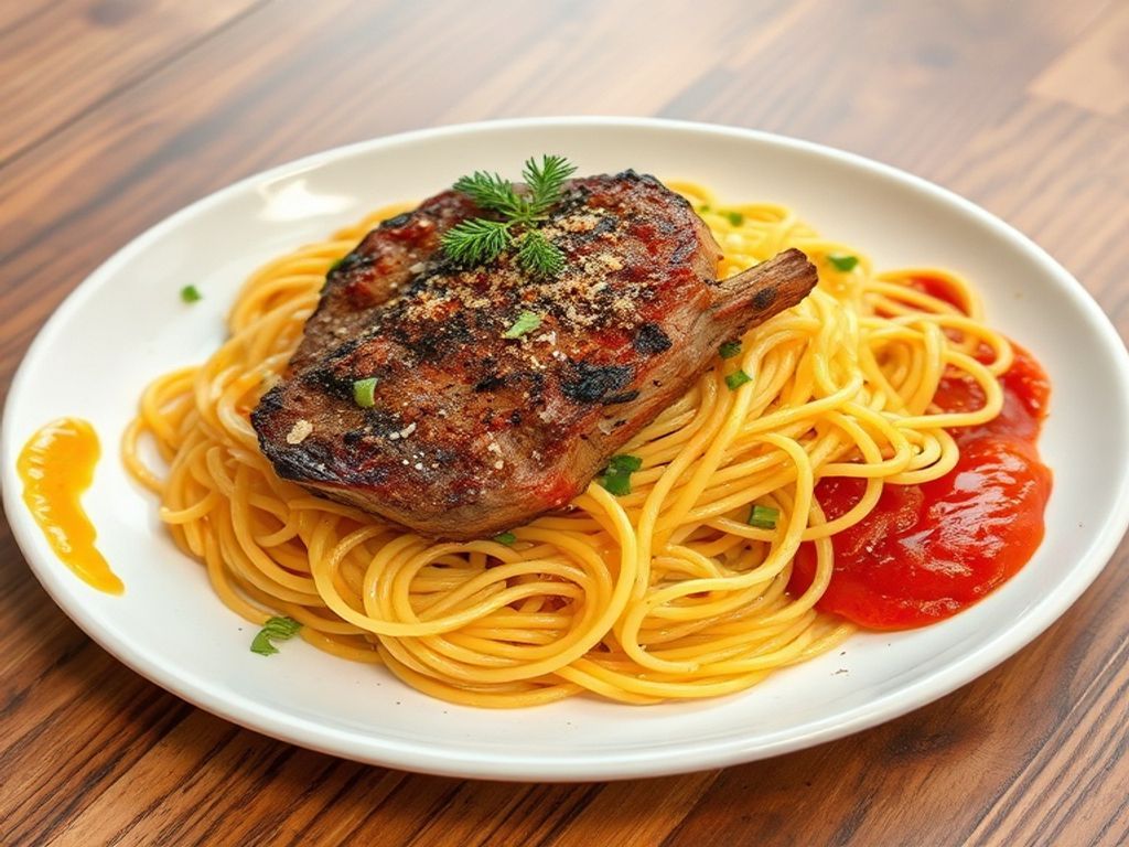 Spaghettis Principal: Bœuf, mouton, porc, poulet ou poisson grillé (200g)